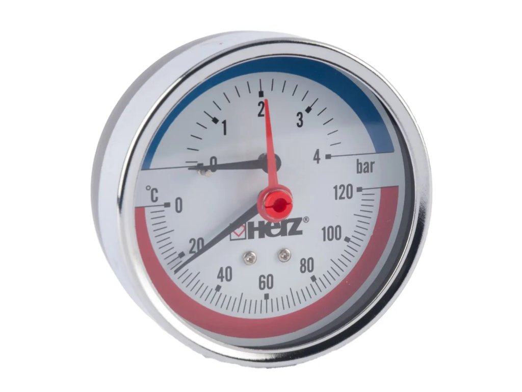 Stupnice teploty od 0-120°C a stupnice tlaku 0-4 bar. G 1/2".